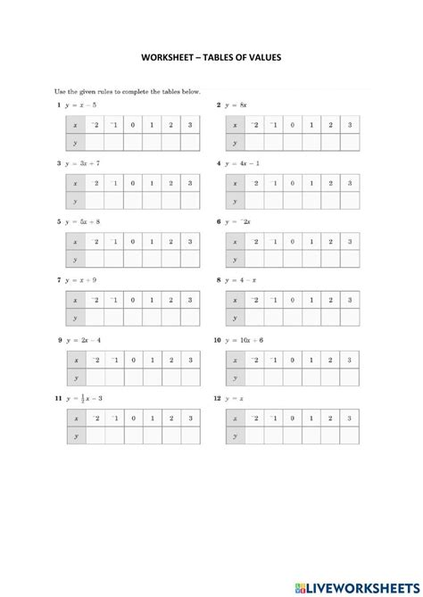 Table Of Values Worksheet Pdf. I) create a table of values for each relation (with at least 3 ordered. Table of values linear graphs.
