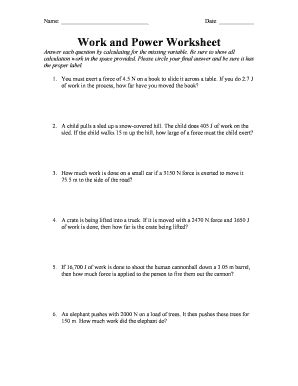 It includes 10 worksheets, with answers, and is 17 pages long. Please circle your final answer and be sure it has the proper label. Calculate the work done by a 47 n force pushing a pencil 0.26 m.